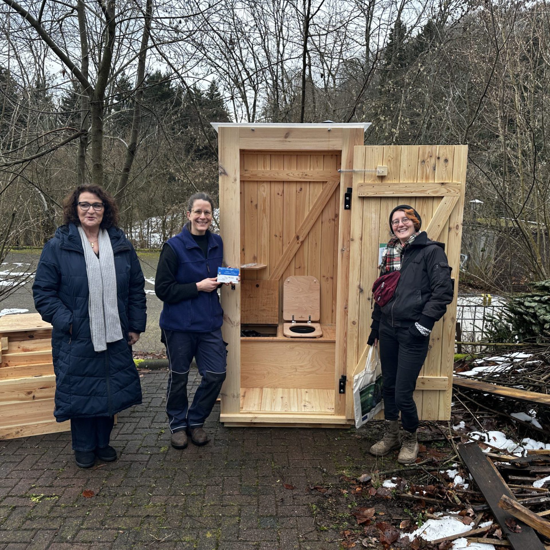Dank der bewilligten Förderung durch die Region Lahn-Dill-Wetzlar ließen sich nahezu alle beantragten Ausstattungsgegenstände anschaffen – von Bierzeltgarnituren und Sitzsäcken für flexible und einladende Veranstaltungsformate, über einen Defibrillator für mehr Sicherheit bis hin zu neuen Ruhe- und Aufenthaltsmöglichkeiten wie Baumelbank und Waldsofa. Auch Maßnahmen zur Verkehrsberuhigung, neue Tafelträger für Informationsschilder sowie das geländegängige E-Quad mit Anhänger zur Pflege des weitläufigen Geländes tragen nun sichtbar zur Qualität des Ortes bei. Einen Beitrag zu ökologischem Tourismus und als Inspiration für Ressourcenschonung leistet die öffentliche und ästhetische Trockentrenntoilette aus Holz mit Kompostersystem am Besucherparkplatz.